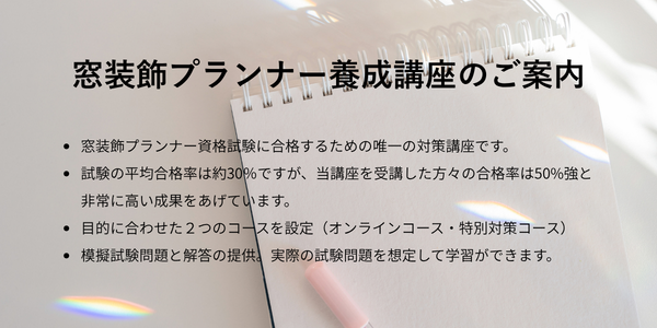 窓装飾プランナー資格試験に合格するための唯一の対策講座です