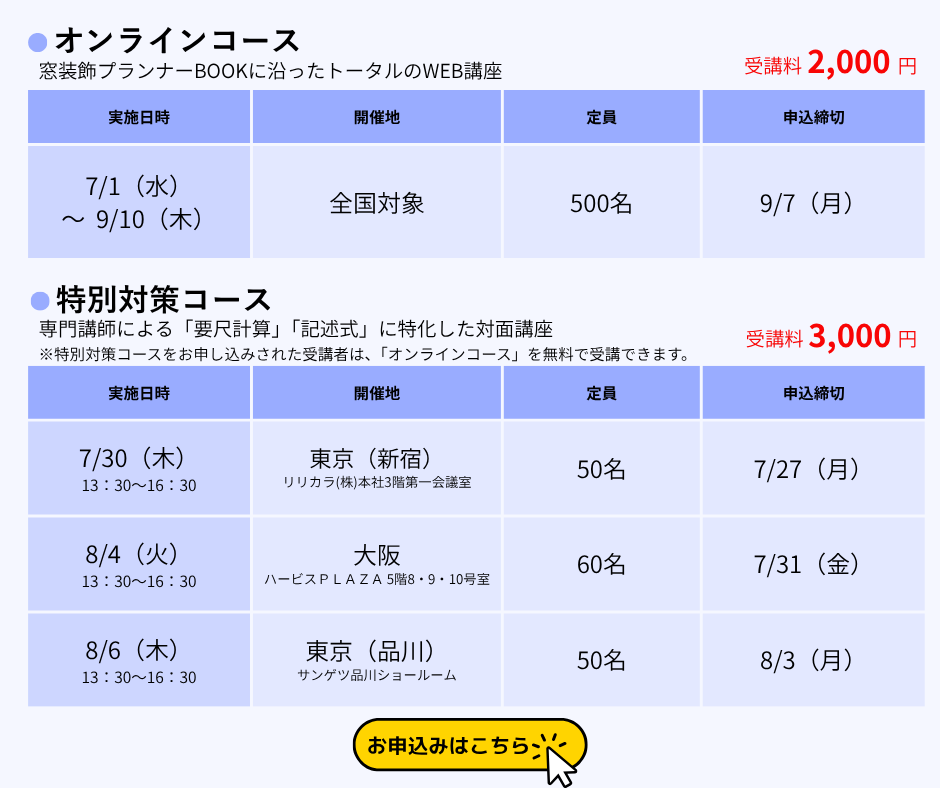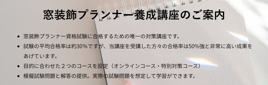 窓装飾プランナー資格試験に合格するための唯一の対策講座です